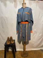 Calções de ganga com detalhes em laranja utilizado por David Meco e Afonso Abreu no espetáculo Com que Linhas te Cruzas