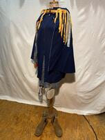 Capa azul com fitas amarelas utilizada por Afonso Abreu no espetáculo Com que Linhas te Cruzas