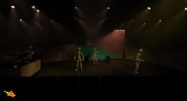 Planejamento de luz e posicionamento de palco da cena 3 de Ti Coragem e Filhos Lda