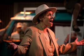 Chapéu bege utilizado por Isabel Craveiro em Ti Coragem e Filhos Lda.