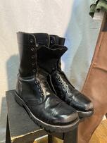 Coturnos pretos de cano alto utilizados como figurino base para os atores Afonso Abreu , David Meco, Diogo Simões, João Santos e Teosson Chau