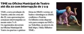 Notícia do Diário de Coimbra do dia 04 de maio de 2023, sobre o espetáculo TIME