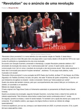 Recorte de notícia do Diário As Beiras sobre o espetáculo Revolution (título provisório).