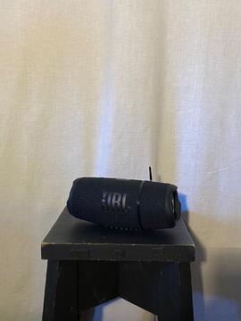 Coluna JBL na cor preta utilizada para a personagem "passageiro 2" interpretada por Afonso Abreu na criação "Com que Linhas te Cruzas, Parte 2 : A Viagem".