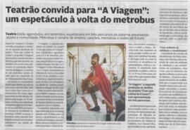 Recorte da notícia intitulada "Teatrão convida para "A Viagem" no Metrobus", referente ao espetáculo "Com que Linhas te Cruzas, Parte 2 : A Viagem", publicada no Diário de Coimbra no dia 29 de Agosto de 2025, na página 3.