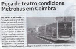Recorte da notícia intitulada "Peça de Teatro condiciona Metrobus em Coimbra", referente ao espetáculo "Com que Linhas te Cruzas, Parte 2 : A Viagem", publicada no Diário de Coimbra no dia 10 de Setembro de 2025, na página 7.
