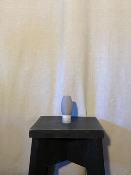 Embalagem de viagem para cosméticos na cor cinzenta, utilizada em peça com pó talco no interior para simular uma neblina no meio do público, pelo ator Afonso Abreu na criação "Com que Linhas te Cruzas, Parte 2 : A Viagem".
