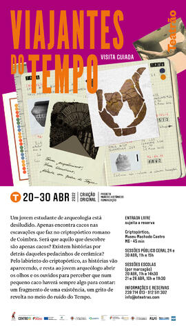 Convite do espetáculo "Viajantes do Tempo" de autoria de Inês Silva e João Gaspar, no âmbito do Projeto "Marcos Históricos - Romanização"