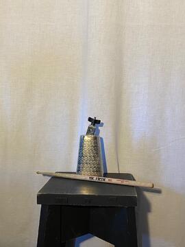 Timbalão e campana utilizados por Miguel Cordeiro na cena inicial da criação "Com que Linhas te Cruzas, Parte 2 : A Viagem".