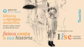 Banner do facebook para a divulgação da sessão online das "Leituras da menina Andarilha" do conto "Faísca" de Ilse Losa.