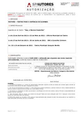 Autorização da utilização das obras de Ilse Losa e das obras musicais pré-existentes, utilizadas no espetáculo "Ilse, a menina Andarilha", por parte da Sociedade Portuguesa de Autores (SPA).