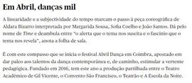 Notícia do Público do dia 26 de março de 2023, sobre o espetáculo TIME